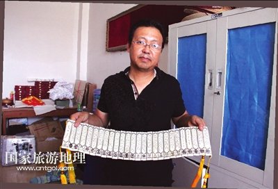 說起他們引以為傲的骨雕作品時(shí),哈斯達(dá)來老師告訴記者,那就是經(jīng)過40多人花費(fèi)4個(gè)多月時(shí)間純手工雕刻,于2008年8月完成的《蒙古秘史》。為了完成這件藝術(shù)作品,他們從3000多頭牛中挑選出6000塊牛大骨(每頭牛只有2塊牛大骨),再?gòu)闹羞x出同樣尺寸的4000多塊牛大骨,然后經(jīng)過消毒、打磨,選用了其中的1400塊進(jìn)行雕刻。骨雕作品《蒙古秘史》共12章282節(jié),長(zhǎng)32米,寬15厘米,現(xiàn)陳列于內(nèi)蒙古師范大學(xué)文學(xué)館內(nèi),正在申報(bào)吉尼斯世界紀(jì)錄。哈斯達(dá)來老師希望通過此種形式,進(jìn)一步展現(xiàn)骨雕藝術(shù)的魅力。有了經(jīng)驗(yàn)以后,2009年8月,他們又完成了《蒙古秘史》的第二次雕刻,這次的作品長(zhǎng)29米,寬12.4厘米,骨頭厚度0.3厘米,現(xiàn)陳列于該校的展覽館內(nèi)。