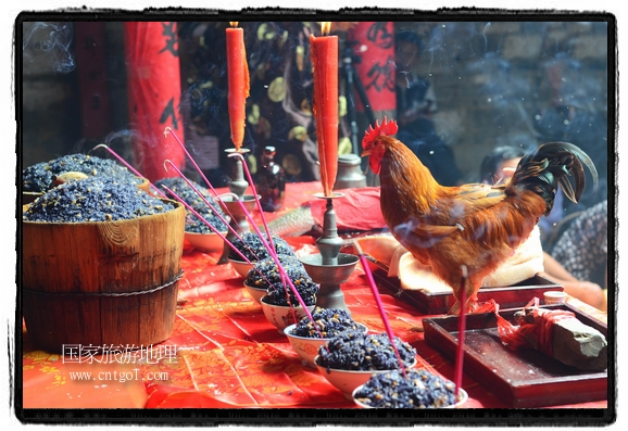 國家旅游地理 江西婺源(上饒)5月31日訊(特約記者王國紅 通訊員程新德攝影報道) “祭祀開始、鳴炮奏樂、祭拜、主持人講話、結(jié)束鳴炮”,5月25日,農(nóng)歷四月初八,石佛村烏飯節(jié),村民將自家精心制作的烏飯端進祠堂祭祀。江西省婺源縣段莘鄉(xiāng)石佛村每年都要舉行烏飯祭祖活動,各家各戶將自家精心制作的烏飯端進祠堂……