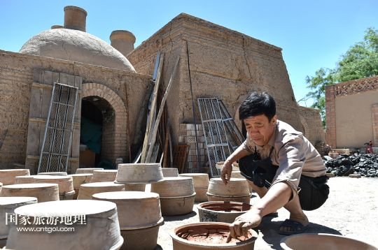 國(guó)家旅游地理 寧夏銀川6月12日訊 6月11日,李五奎在銀川西夏風(fēng)情園陶藝館制作陶罐。今年51歲的陶藝師李五奎和泥巴打了一輩子交道。從他爺爺開(kāi)始,一家三代人都以制陶為生。李五奎從十幾歲開(kāi)始便幫著家里制作陶器。