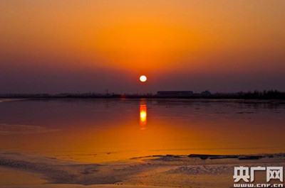 原標(biāo)題:寒冬黃河寧夏黃沙古渡出現(xiàn)“落日繪流凌”美景